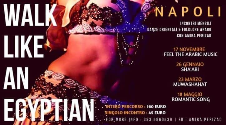 3 • #walklikeanegyptianproject Incontri mensili – Un sabato al mese (calendario degli incontri on line ) dalle 13 alle 16 Un percorso che può essere seguito nella sua interezza o nei singoli incontri, un vero e proprio viaggio teorico & tecnico nel vasto mondo della danza orientale strutturato in 3 livelli nei quali si studiano tutti gli stili della danza & del folklore mediorienale & fusion. Per livelli da intermedi ad insegnanti. Ideale sia per coloro che seguono corsi settimanali regolari, che per chi ha intenzione di approfondire il proprio bagaglio culturale e tecnico con incontri mensili